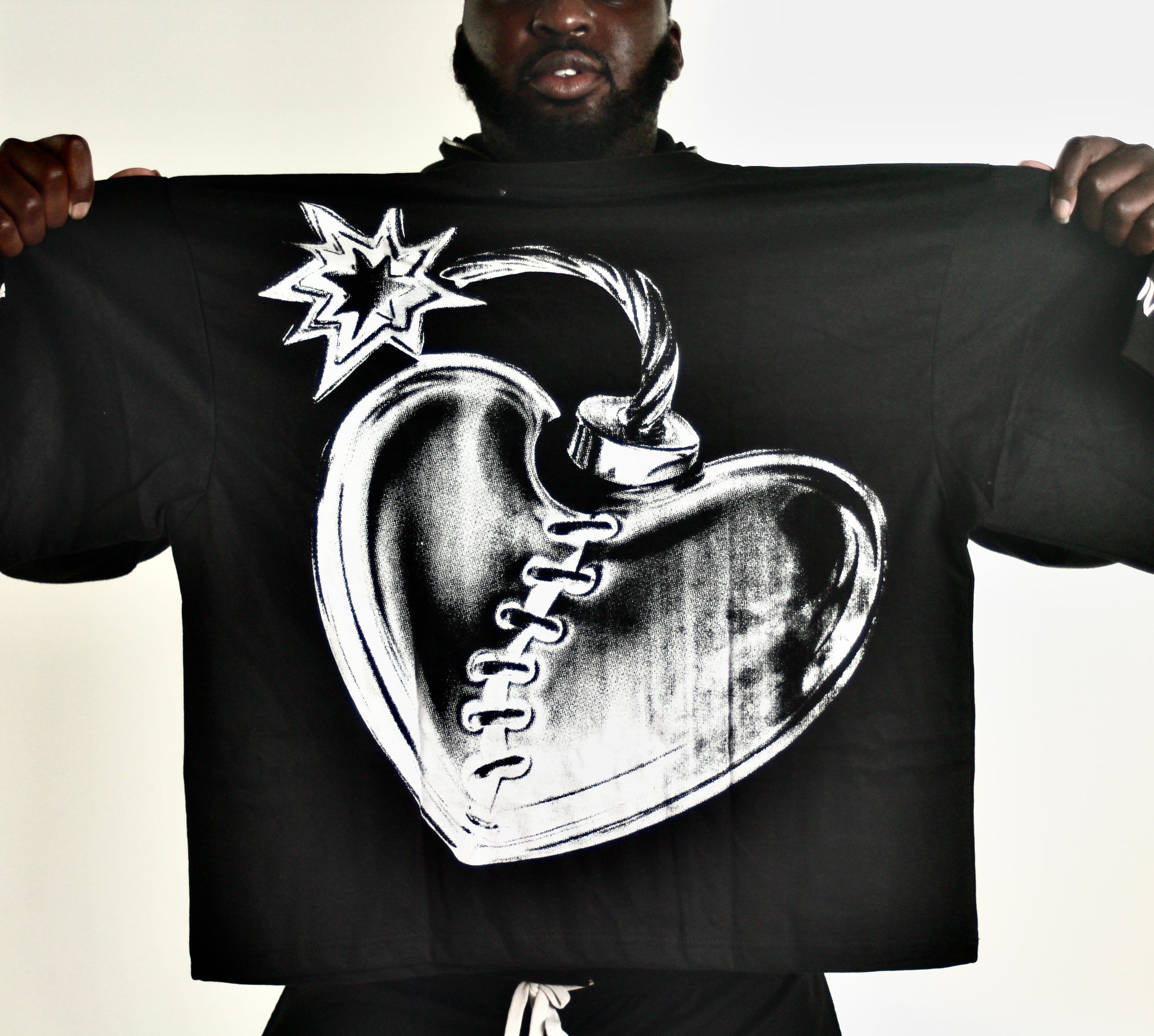 Black Crop Graphic "Love is War" T Shirt From Our "Dare To Wear Your Heart?' Collection